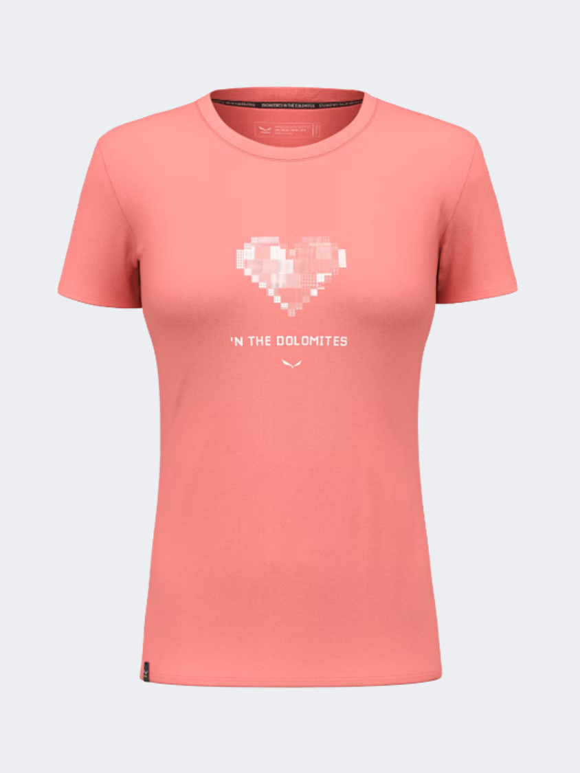 ساليفا تي شيرت نسائي للمشي الجبلي بنمط القلب النقي جاف وردي