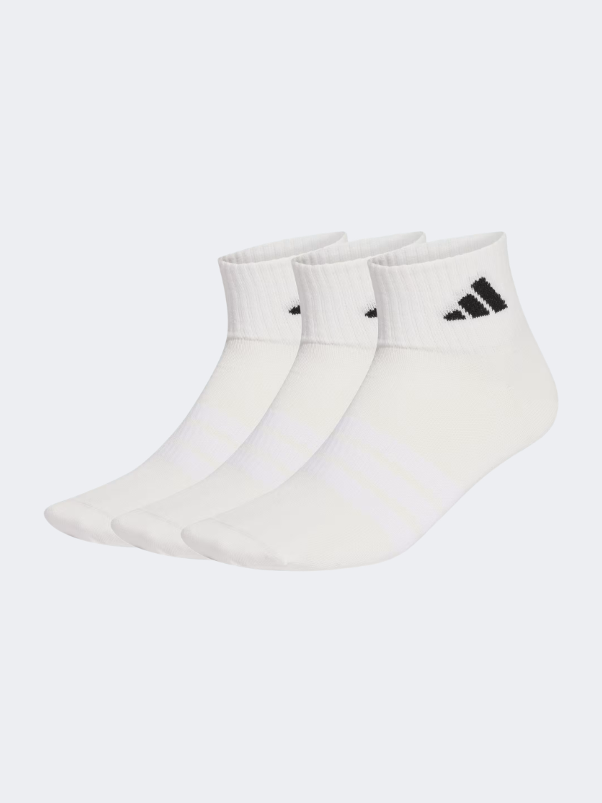 أديداس جوارب تدريب خفيفة ورقيقة للكاحل، 3 أزواج، للجنسين، أبيض/أسود