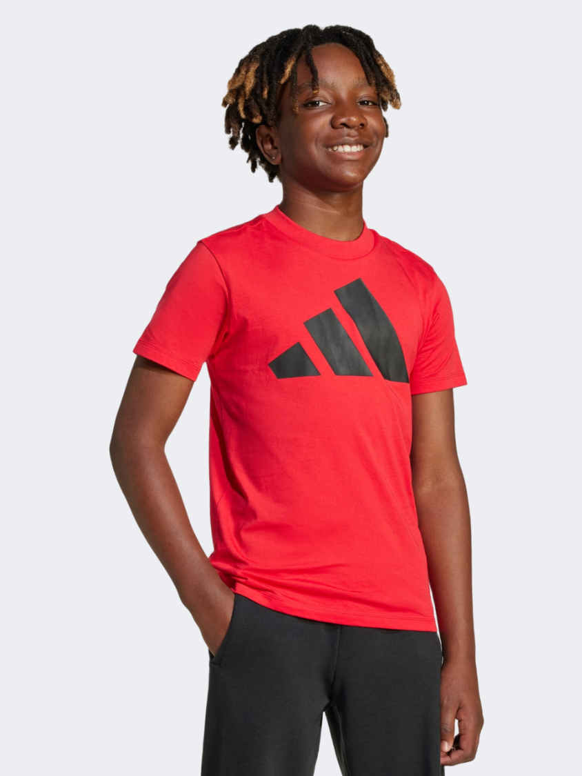أديداس أساسيات ملابس رياضية للأطفال - قميص للأولاد بلون روبي نقي/أسود