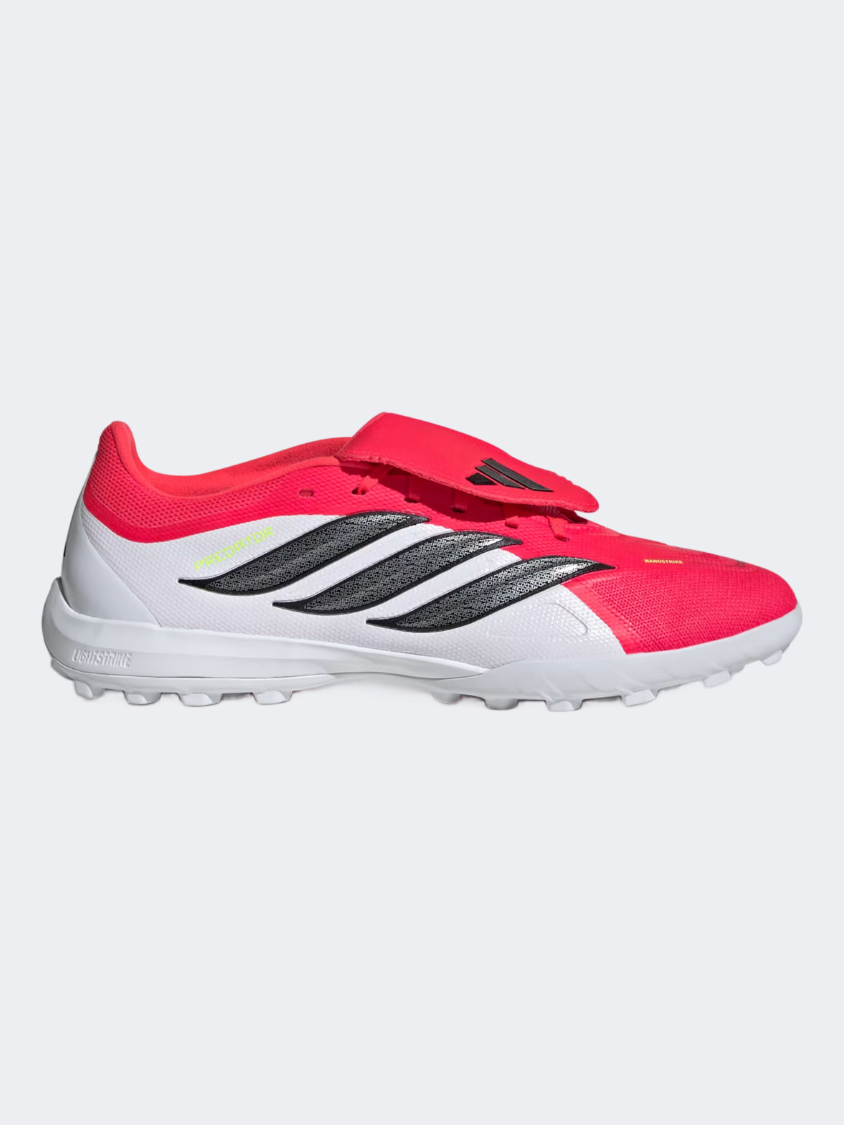 أحذية كرة القدم للرجال من أديداس بريديتور ليغ بنعل صناعي مع لسان قابل للطي باللون الأحمر اللامع