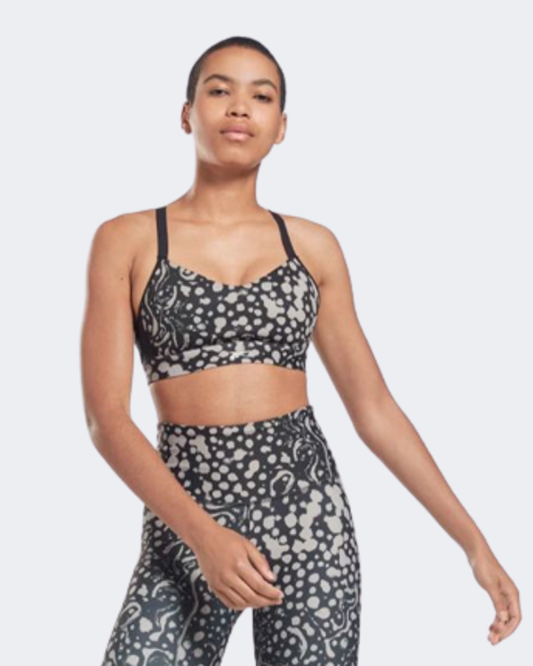 From spin class to weight training, this Reebok sports bra is designed to give you confidence in the gym. It offers medium-support and has adjustable straps and removable pads for a personalized fit. Sweat-wicking Speedwick keeps the focus on your workout. A modern wild animal print adds bold style.