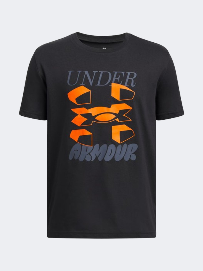 Under Armour تيشيرت للأولاد للحياة اليومية Split Big Logo أسود/رمادي داونبور